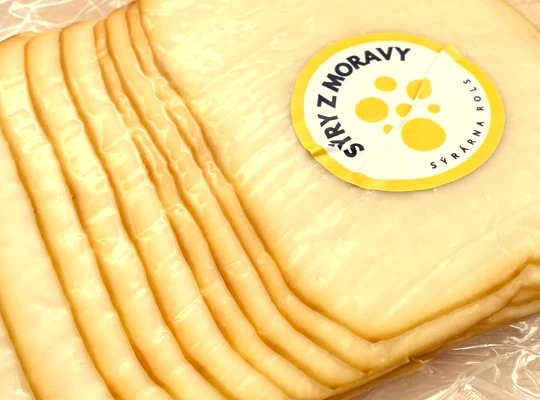 Moravský výběrový sýr v plátcích s jemným uzeným aromatem a plnou chutí. Vyráběn z kvalitního mléka ovlivněného cedrem, ideální pro pečivo, sendviče i sýrová prkénka.